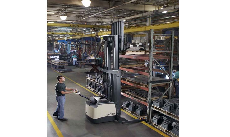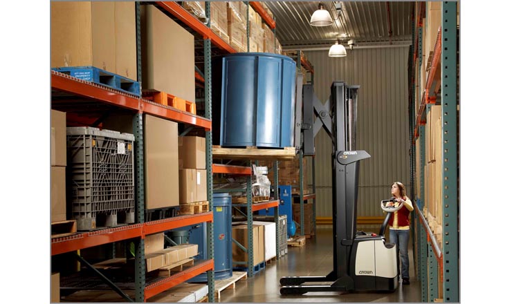 超小轉(zhuǎn)彎半徑——  Crown-科朗SHR系列步行前移式叉車,通過新型控制器和緊湊設(shè)計提升操縱性,具有前移式叉車中較小的轉(zhuǎn)彎半徑(1510mm)和較小的直角堆垛通道寬度(1.1m*1.1m托盤,直角堆垛通道寬度不足2.3米),超常狹小空間內(nèi)也能方便使用。