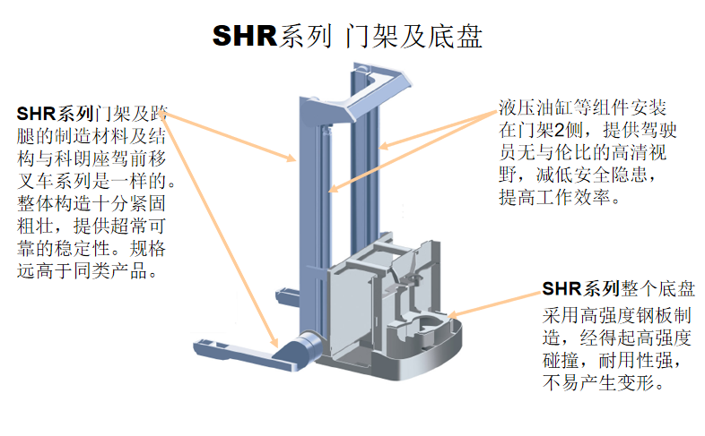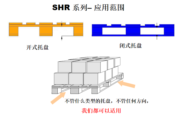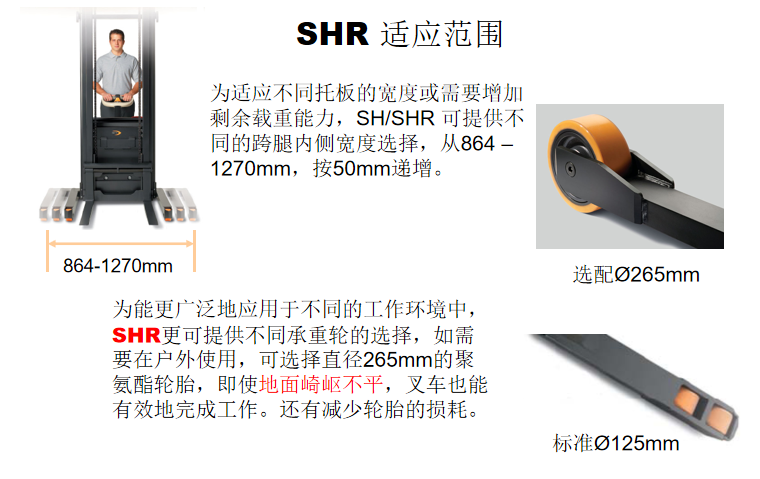 適用各種類型托盤——SHR步行前移式堆高車系列所采用的剪刀叉式前移裝置融合了跨腿式堆高機(jī)的靈活操控性和平衡重叉車的廣泛應(yīng)用性,能夠搬運(yùn)各種類型的托盤。