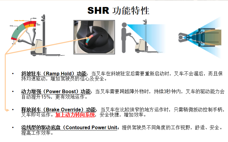 操作輕松簡單 ——單手即可操作重達(dá)4000磅(1590kg)的貨物。制動超越功能方便在極其狹小空間內(nèi)進(jìn)行作業(yè),手柄幾乎處于垂直位置。低位動力裝置、清晰的門架設(shè)計(帶嵌套式導(dǎo)軌)和高效的液壓軟管布置提供了良好的視野,便于快速安心地搬運(yùn)高位貨物。