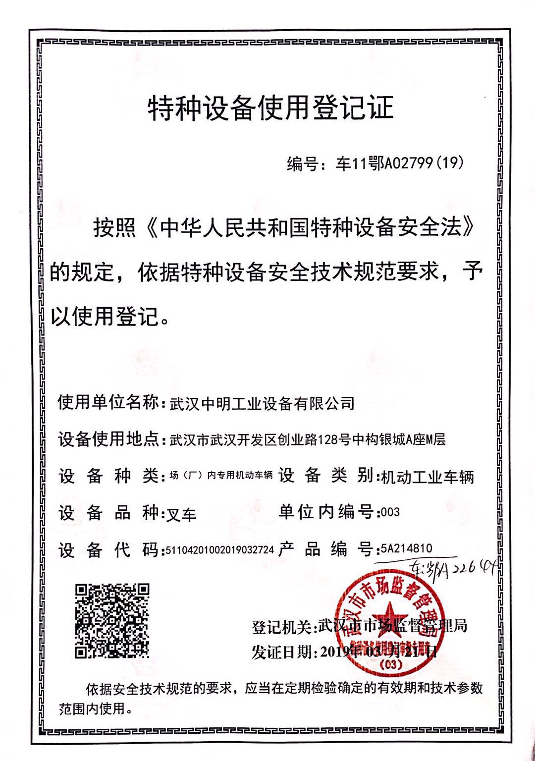 5、叉車(chē)制造許可證(進(jìn)口設(shè)備無(wú)此項(xiàng)資料要求)