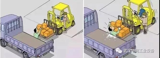 4、在卸貨時,司機離開叉車座位,叉車遷移,將裝卸工夾住。