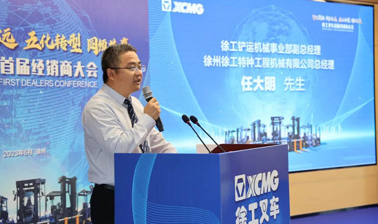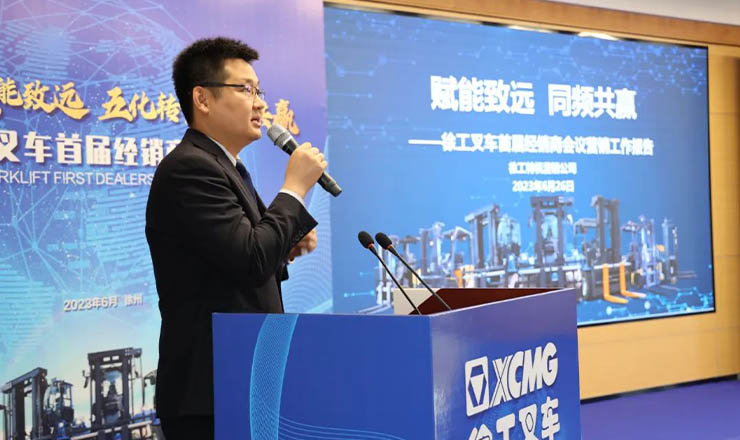 第二個(gè)環(huán)節(jié)是徐工叉車營銷工作報(bào)告。徐工特機(jī)副總經(jīng)理、營銷公司總經(jīng)理胡斯勒在會(huì)上作了營銷工作主題報(bào)告,回顧近年徐工叉車取得的市場(chǎng)成就,從宏觀角度深刻剖析全球及行業(yè)發(fā)展趨勢(shì),全面闡述了徐工叉車戰(zhàn)略藍(lán)圖、經(jīng)營模式、業(yè)務(wù)模式,開拓了我們經(jīng)銷商的經(jīng)營思路和應(yīng)對(duì)措施,鼓勵(lì)叉車經(jīng)銷商們協(xié)同一致,行而不輟,未來可期。