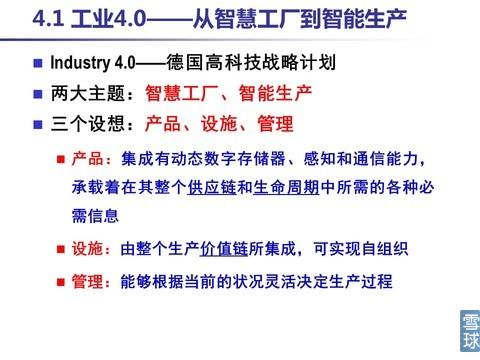 德國學術界和產(chǎn)業(yè)界認為,“工業(yè)4.0”概念即是以智能制造為主導的第四次工業(yè)革命,或革命性的生產(chǎn)方法。該戰(zhàn)略旨在通過充分利用信息通訊技術和網(wǎng)絡空間虛擬系統(tǒng)—信息物理系統(tǒng)(Cyber-Physical System)相結合的手段,將制造業(yè)向智能化轉(zhuǎn)型。