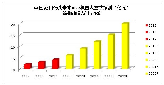 據(jù)測(cè)算,單個(gè)碼頭AGV小車的需求量約70臺(tái),中國(guó)主要的單個(gè)大型港口的總需求量保守估計(jì)在1500臺(tái),市場(chǎng)產(chǎn)值在5-10億元人民幣。截止2016年中國(guó)吞吐量過億的大型港口就有十五個(gè),如果按照每個(gè)大型港口平均500臺(tái)(保守)AGV的需求量來算,就是7500臺(tái)AGV產(chǎn)品,市場(chǎng)產(chǎn)值將是20-60億人民幣。這僅僅是吞吐過億的十五大港口,中國(guó)貨運(yùn)碼頭港口總共超過500個(gè)。該市場(chǎng)需求將在較短時(shí)間內(nèi)呈直線上升趨勢(shì),5年后逐步趨向穩(wěn)定??梢灶A(yù)測(cè),未來的幾年,正因?yàn)榫薮蟮慕?jīng)濟(jì)和社會(huì)效益,港口應(yīng)用將是AGV在中國(guó)富有前景的行業(yè)。